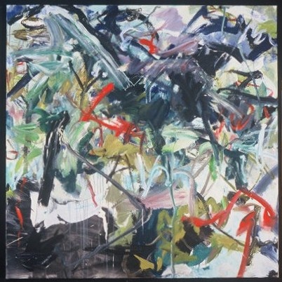 1596 : Diptych. Multiple colors including greens, blues, browns, reds, white, and black. BL has blue drips, and a large area of gray / black with some white and a vertical red line. Verso. On TC vertical stretcher bar: 55A/2004 / Edged / By Time / Nov. 04. Upside down on CL stretcher bar: 67 3/4. Upside down on CR, stamped: <symbol> DEAD <symbol> STRAIGHT.