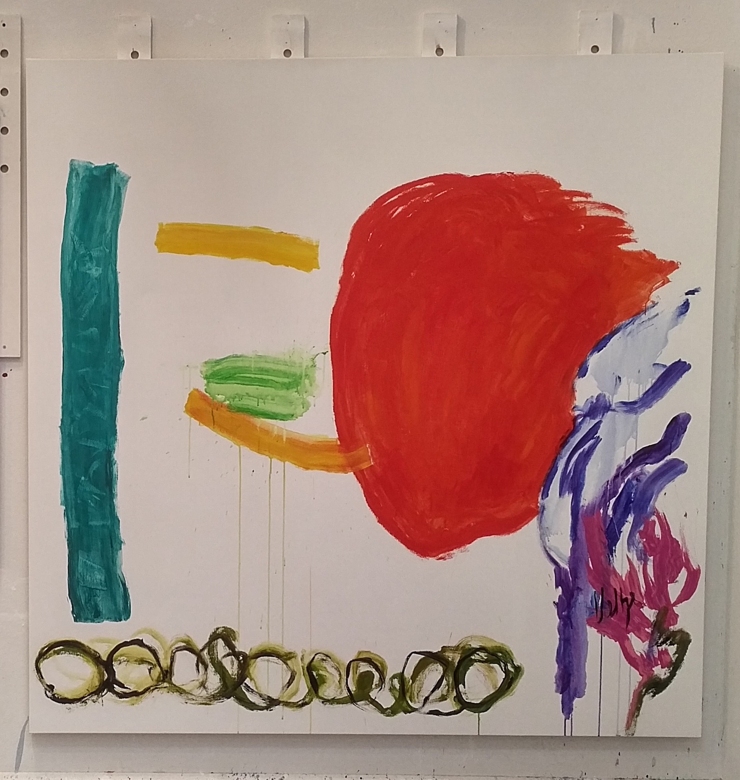 3446 : Orange C and CR. Blue and white and pink CR to BR. Breen pillar TC to BC. Green and black circles BL across BC.