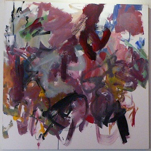 Drips throughout. Black in TL. Some white space, especially in TR and BL / BC. Dark bown in TL. Dark blue in TC / TR. Green in BL and BR. Verso. C stretcher bar, sticker: NELTJE Top / But Who Remembers 3 / Acrylic on Canvas 1992 / 36" x 36". Next: But who / Remembers III. Next: 28/92. Next: Neltje / Banner, WY. TC and CR stretcher bars: 36. Stretcher has screws and can be keyed.